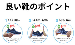 靴選びでは、足底(そくてい)やかかと部分がしっかりしている靴を選ぶことが大切です。