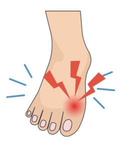 靴を履いていなくても、歩行時に親指を曲げる動きで痛みが出ることが多いです。