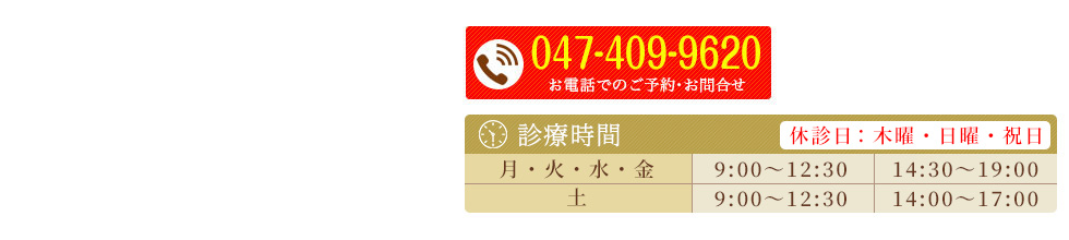 船橋駅徒歩4分、最新の医療機器とリハビリスペースを完備した地域最大規模の鍼灸接骨院で臨床経験豊富な施術者が対応致します。 当院にお越しになる患者様は、病院や接骨院、鍼灸院、整体院などで治療を受けたが、なかなか改善されなかった方や、 スポーツのケガを繰り返してしまうなどで悩んでいる方が多くいらっしゃいます。お身体の不調でお悩みの方は是非ご相談ください。